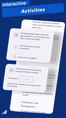 • Organized Learning Path: Learn key topics such as offer and acceptance, consideration, and breach of contract in a structured flow.