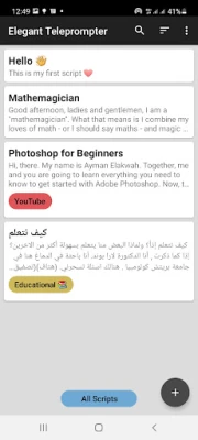 - "Specific Settings" is added where each script can have its own settings (speed, line spacing, text size, focus and width). This option is very helpful for musicians and singers.
