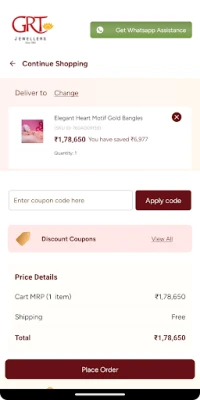 Shopping for your fresh collection of stylish jewellery just got easier with the latest GRT Jewellers app. You will never run out of options with 3000+ jewellery designs at the flick of your fingertip, in gold, diamond, silver, platinum and gemstone! With GRT Jewellers, get tempting offers, personalized jewellery, and much more with key customized features, Try at Home and Shop Live with our jewellery experts to make an informed choice!