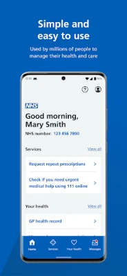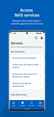 Use the NHS App to access your NHS services, anytime and anywhere. You can request repeat prescriptions, use 111 online, find nearby NHS services and more.