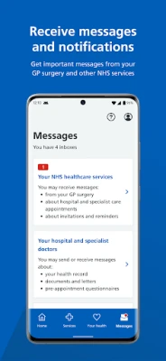 You can get important messages from your GP surgery and other NHS services through the app. Turning on notifications can alert you to new messages.