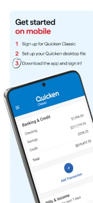 Quicken Classic is currently available on Android mobile or tablet devices running 4.1 or higher. Windows Phone and Blackberry are not supported at this time.